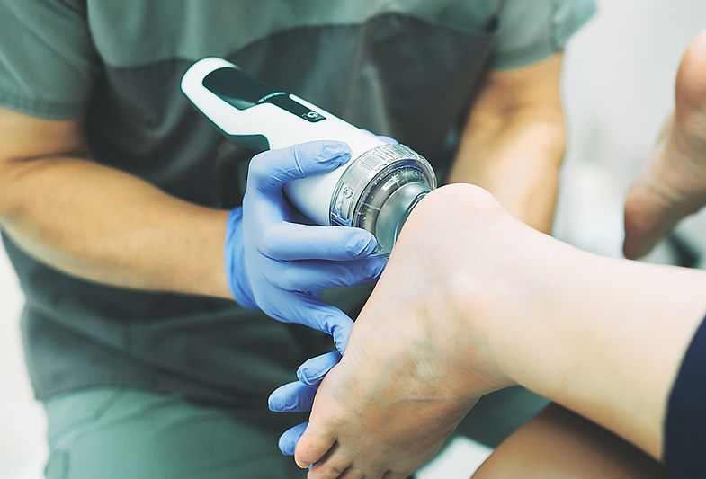 低侵襲で安全かつ有効な治療法として足底腱膜炎や腱付着部障害、骨性疾患においても低出力の衝撃波が利用されるようになりました。