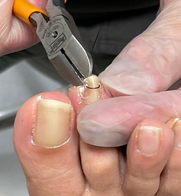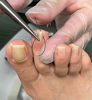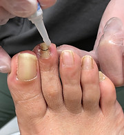 • ワイヤーに対応した注射針を使用し、爪甲を広げたい方向を慎重に決定します。